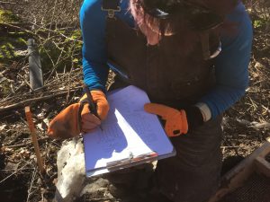- Crew chief Dr. Kathryn Whalen checks over paperwork for Site 19.
