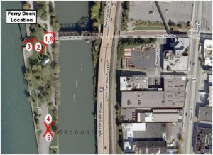 - An aerial view of several important locations (including the ferry dock), later photographed as places of interest.